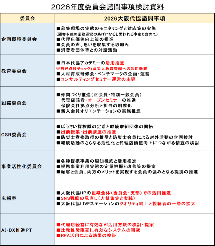 各委員会はこれに基づき、次年度事業計画を立案し、2月12日までに事務局へ提出してください