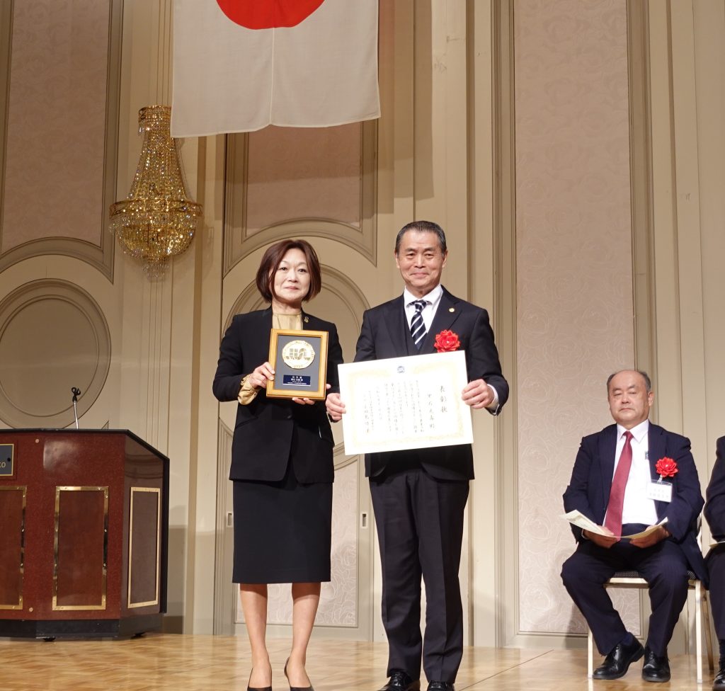 ※小田島会長(左)から表彰される黒石相談役