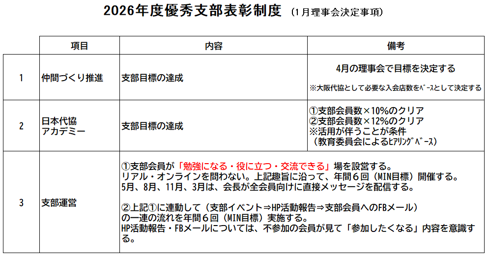 2026年度の優秀支部表彰規定が決定しました