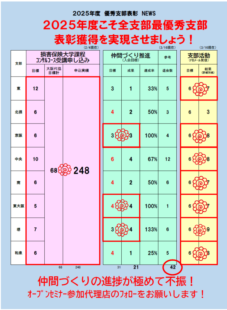 やはり仲間づくり推進は大阪代協の最重要課題です。業界の変革期に代協の価値を最大限PRし、「保険代理店である以上、代協には必ず入っておく必要がある」という考え方を浸透させましょう。