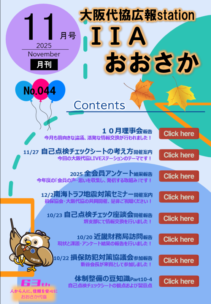 さて、今月も「IIAおおさか(11月号)」をお届けします。