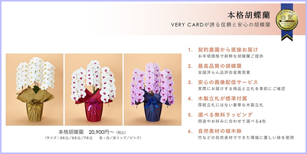◆胡蝶蘭、供花など、VERY CARDと同時に手配が可能です。